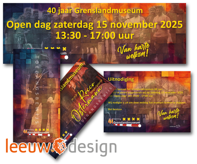 Spandoek, toegangsbewijs en uitnodiging ter gelegenheid 40 jarig jubileum Grenslandmuseum